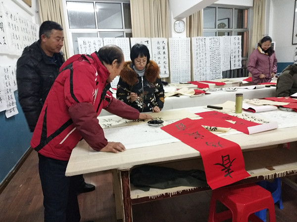 學員董兵說:“寫春聯(lián)不僅可以宣傳當今新生活,還能表達自己的祝福,我在社區(qū)工作十多年了,沒想到還能夠換一種方式為居民服務(wù),真是有意義的事。”剛上兩節(jié)課的新學員張云說:“我是這里基礎(chǔ)最差的了,也跟著他們練練,說不準過年也能自己寫春聯(lián)呢!”