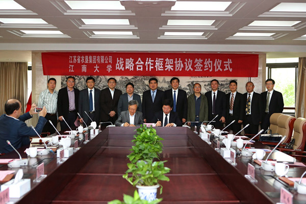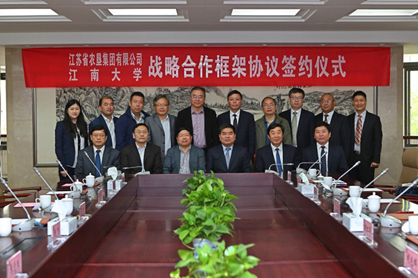 5月7日上午,江蘇省農墾集團有限公司與江南大學戰(zhàn)略合作簽約儀式在無錫舉行。江南大學校長陳堅、副校長吳正國,集團公司黨委書記、董事長魏紅軍,總經理胡兆輝,黨委委員蘇志富等出席簽約儀式。魏紅軍、陳堅分別代表雙方在簽約儀式上致辭。簽約前,江南大學黨委書記朱拓會見了魏紅軍一行。