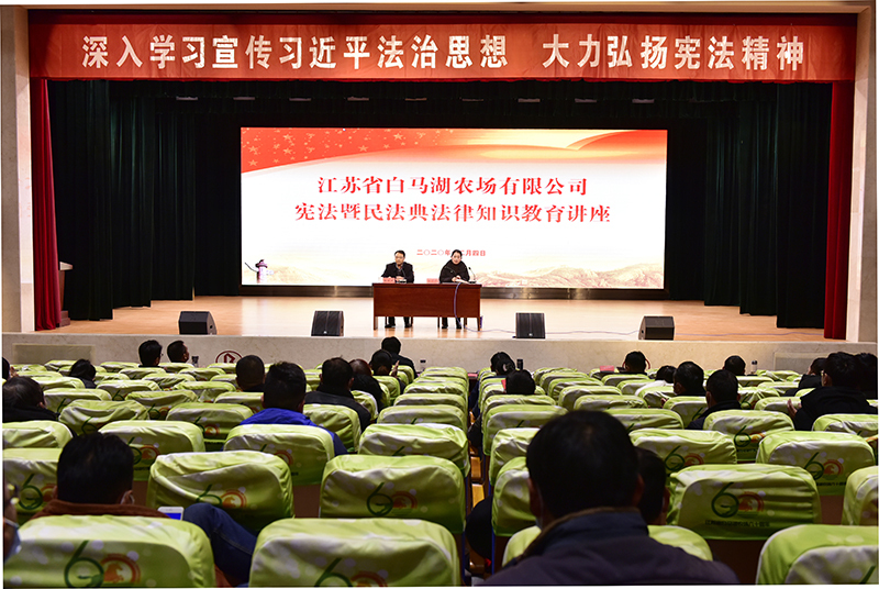 12月4日上午,在我國第七個國家憲法日和第三個“憲法宣傳周”之際,白馬湖農場公司圍繞“深入學習貫徹習近平法治思想 大力弘揚憲法精神”這一主題,通過舉辦憲法暨民法典法律知識教育講座,同時啟動開展“法治宣傳月”和“憲法宣傳周”活動,深刻宣傳領會黨的十九屆五中全會精神,深化了解把握全面依法治國的重大意義。