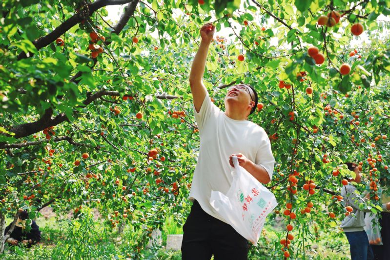 又是一年杏子黃,碩果壓枝正飄香。眼下,江蘇淮安盱眙三河農(nóng)場(chǎng)的杏林迎來(lái)豐收,果香四溢的杏子掛滿枝頭,果農(nóng)搶抓晴好天氣進(jìn)行采摘、分揀、裝箱,一派忙碌的豐收景象。 作者:錢厚紅 韓磊