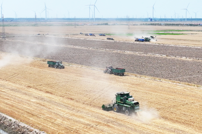 2025年5月29日,鹽城射陽縣江蘇農(nóng)墾臨海農(nóng)場順泰生產(chǎn)區(qū)麥浪涌動,大型聯(lián)合收割機(jī)轟鳴作業(yè),率先拉開當(dāng)?shù)叵氖招←溞蚰弧=陙恚r(nóng)場黨委以墾地合作推動發(fā)展,通過技術(shù)賦能與鹽堿地改良,昔日鹽堿地蛻變?yōu)椤皣嵓Z田”,為鄉(xiāng)村振興打造國有農(nóng)業(yè)新樣板。