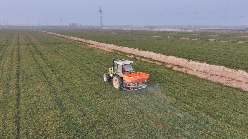 在糧食作物越冬管護方面,蘇墾農(nóng)發(fā)濱淮分公司聚焦6.2萬畝秋播小大麥安全,以“因苗分類、按需補給”為核心制定科學施肥方案,精準應(yīng)對不同苗情需求。其中,西瓜茬小麥重點推進“捉黃塘促平衡”,長勢均衡的稻茬麥田每畝施用氯基復(fù)合肥,苗情較差的田塊則采用“復(fù)合肥+尿素”組合模式,通過“多次少量”的精細化管理攻克黃苗弱苗難題。截至1月18日晚,該分公司麥田撒肥任務(wù)全面完成,同步推進清溝理墑與病蟲防控工作,組織人力疏通溝系避免淤塞,農(nóng)技人員深入田間動態(tài)監(jiān)測病蟲草害,備足應(yīng)急物資確保凍害及時處置,為后續(xù)作物生產(chǎn)奠定堅實基礎(chǔ)。