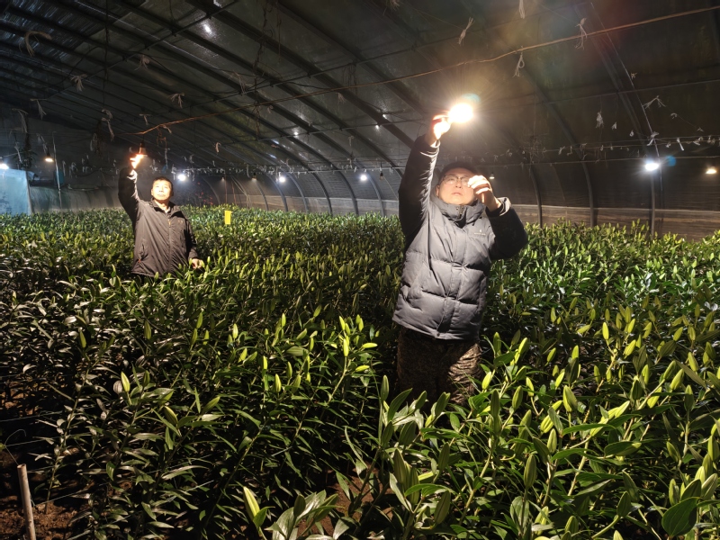 崗埠農(nóng)場則聚焦高效農(nóng)業(yè)示范園作物分類管護,組織人員對所有大棚骨架、保溫棉被進行全面檢修加固,為1.5萬株百合花苗噴施抗逆性葉面肥,對西紅柿苗開展精準打杈、澆水管理,提前準備40余臺套熱風機、水源熱泵等加溫設(shè)備,其中31號大棚通過水源熱泵將夜間溫度穩(wěn)定在16.5℃,有效保障作物生長關(guān)鍵期需求。