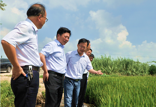 楊義林陪同調研  金秋田野,稻谷飄香,滿是豐收喜悅與希望。9月20日下午,集團公司黨委書記、董事長魏紅軍,黨委委員、總經理助理楊義林一行,深入灌云縣圖河鎮、下車鎮考察調研產業扶貧。  魏紅軍一行首先來