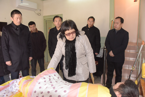 2月7日上午,集團公司紀委書記章朝陽一行到濱淮農場走訪慰問困難職工,農場黨委成員李德利、傅龍光、馬傳武陪同?! £惼际菫I淮農場四分場退休職工,兒子因車禍去世,后兒媳又離開了這個家庭,女兒也因婚姻問