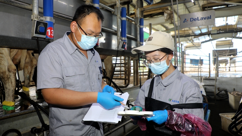 在東旺奶牛公司生態養殖示范場的現代化牛舍里,一頭頭黑白相間的奶?;蛴崎e踱步,或低頭進食,呈現出一派悠然的景象。這背后是牧場“牛人”們用專業與匠心編織的“育牛網”,他們以千百個精細瞬間詮釋著“養好牛才能產好奶”的真理。